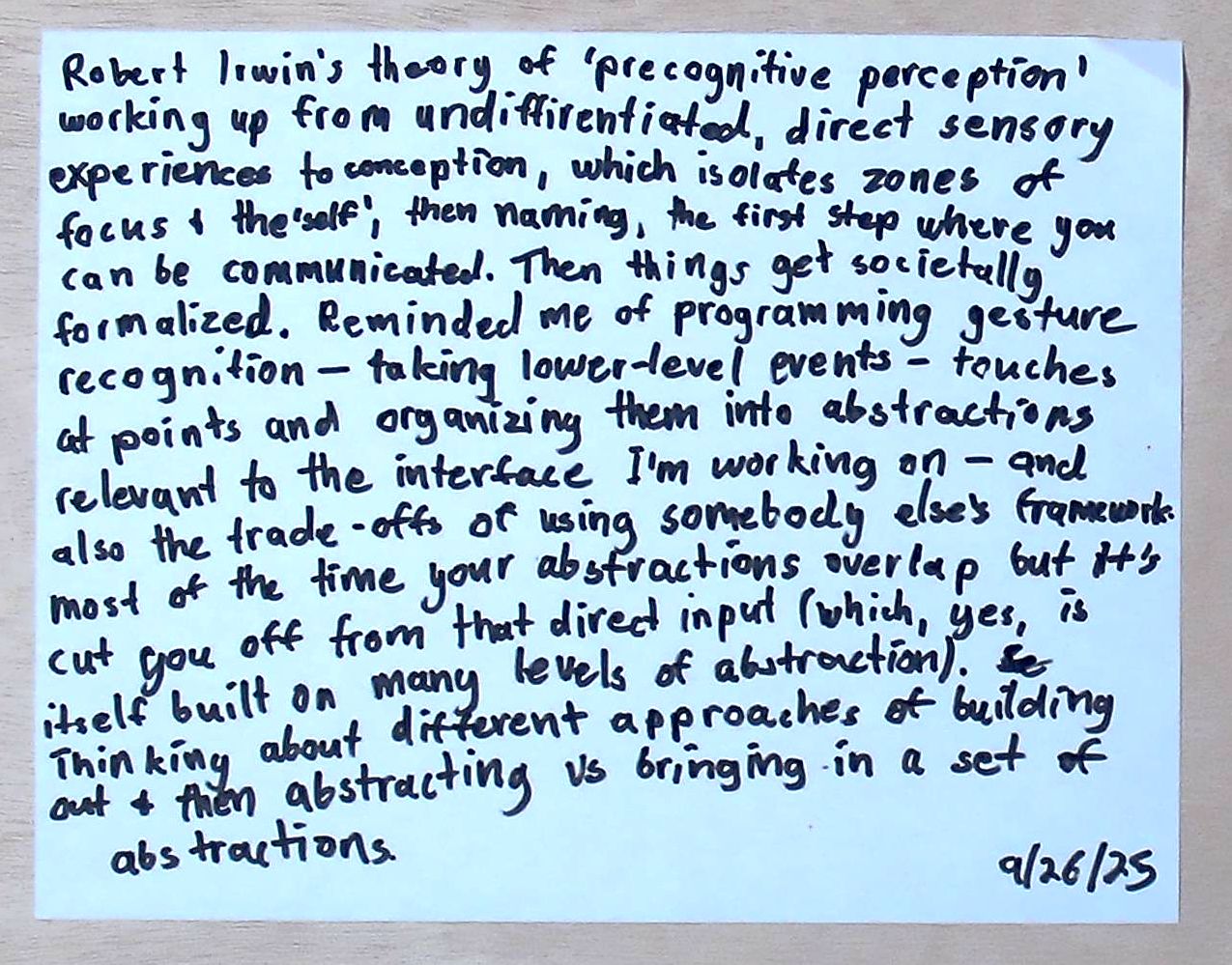 Collecting some recordings of recent experiments. Taking photos of my books, using Gemini image edit generation to isolate those books and then removing their backgrounds, embedding generated summaries of those books and exploring them across various layouts.