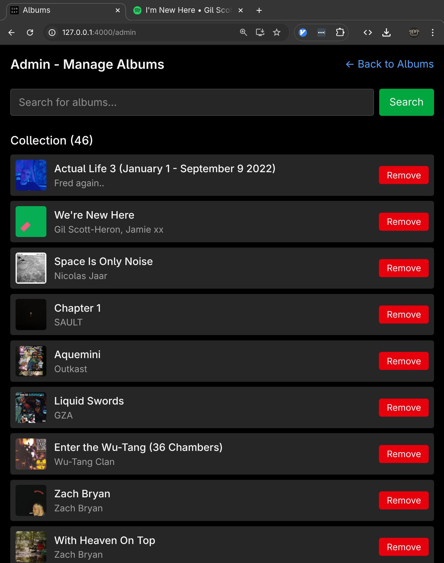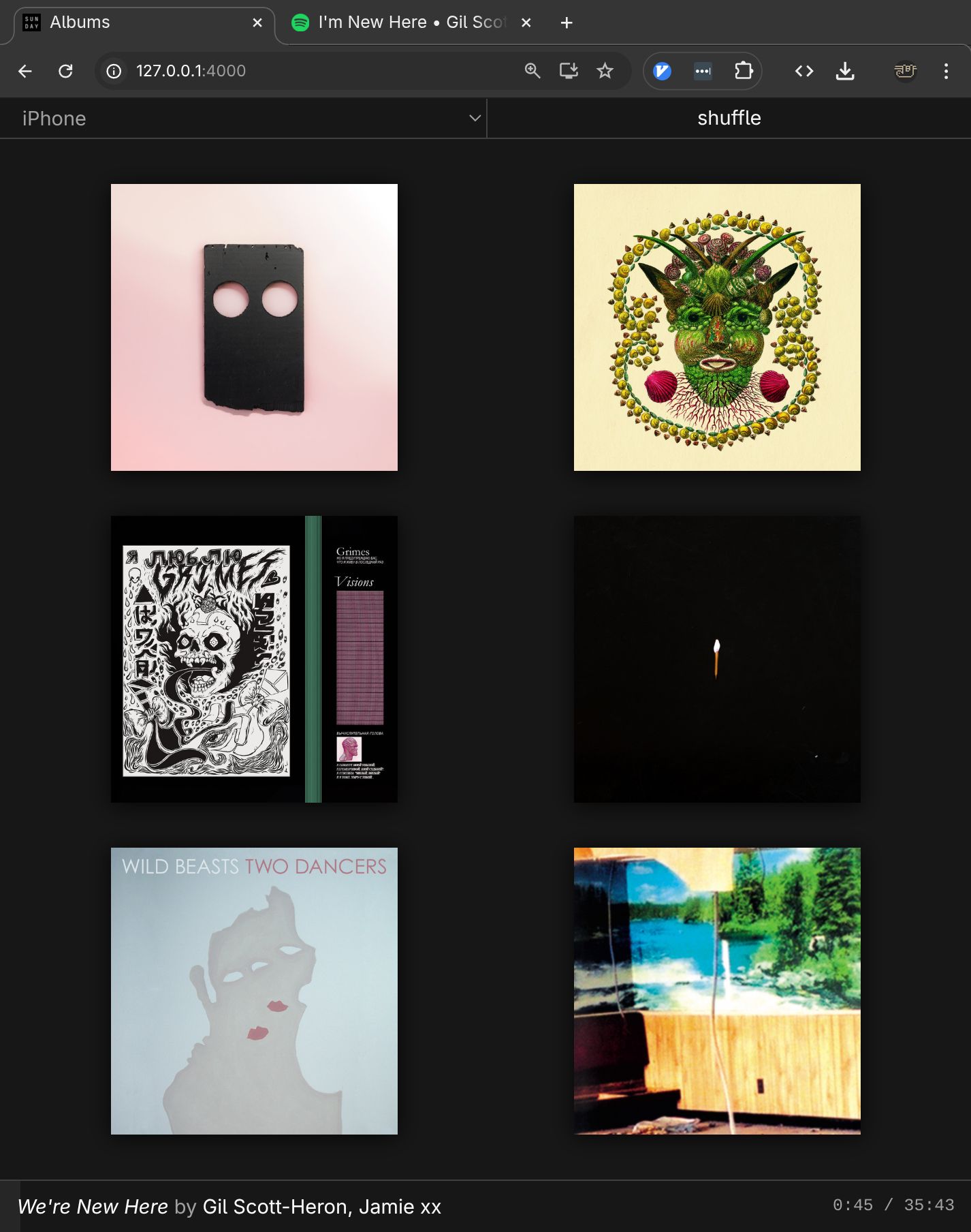 Making another custom spotify interface - focused on surfacing 6 random albums from a collection I've put together.